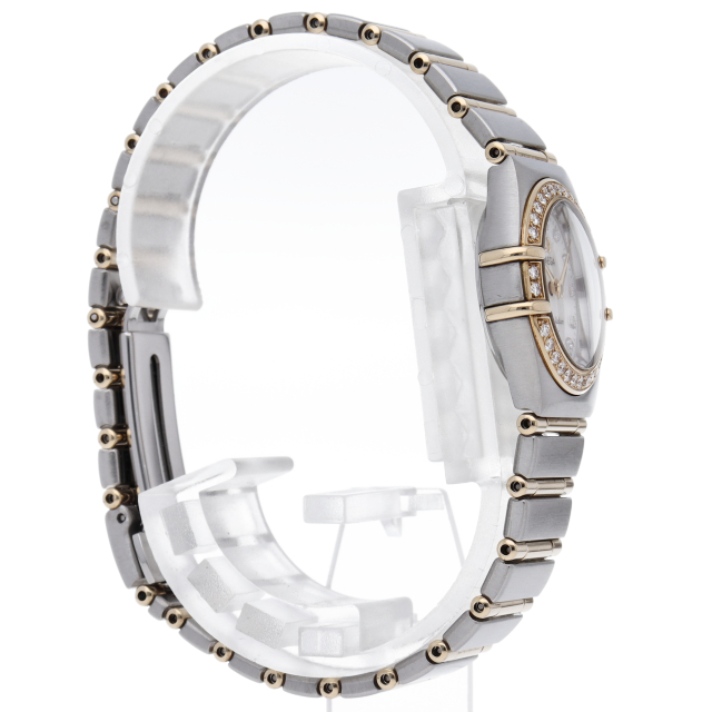 オメガを代表するドレスウォッチ「コンステレーション」。人気のイエローゴールド素材にベゼルにはダイヤが施された高級感溢れる1本。