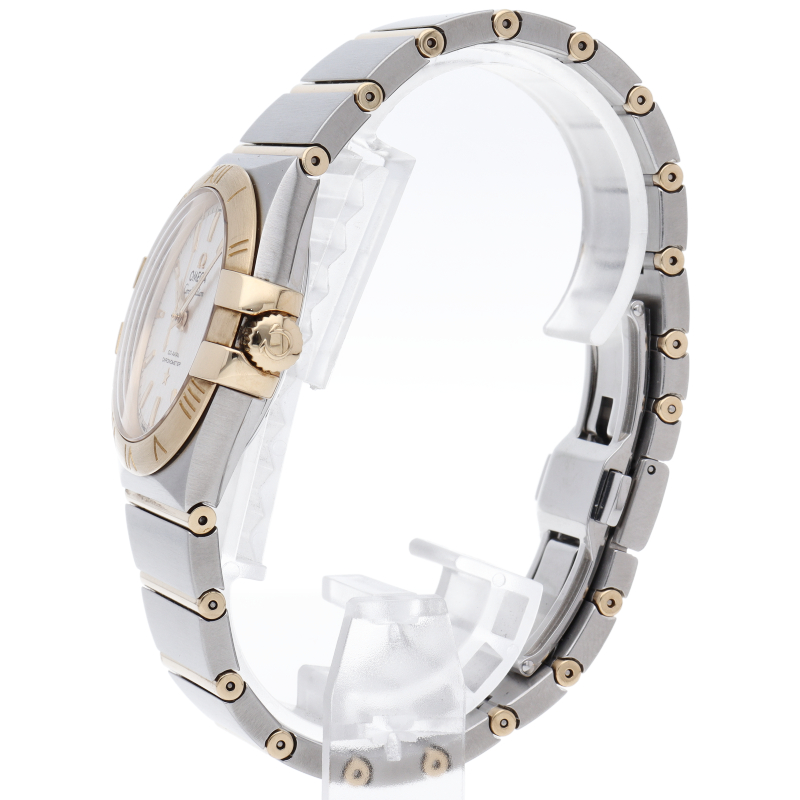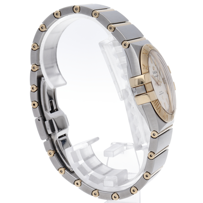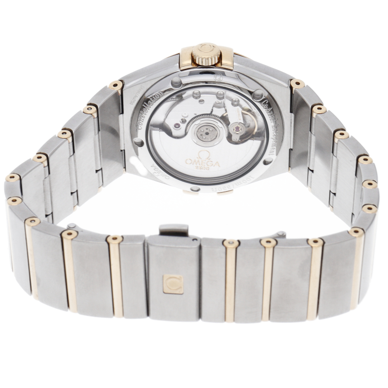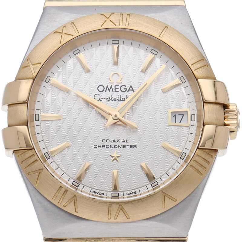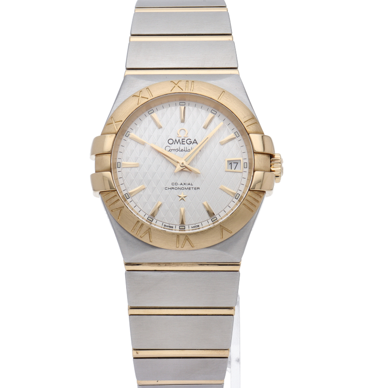 スイスの高級時計ブランドとして世界中から愛される「オメガ」。「コンステレーション」は英語で星座の意味し、3時位置と9時位置にある爪が印象的です。こちらはステンレススチールとイエローゴールドのコンビモデルで、シルバーのダイヤルがコンビモデルながらも落ち着いた印象を与えます。ムーブメントには48時間パワーリザーブのコーアクシャル キャリバー「Cal.2500」を搭載。