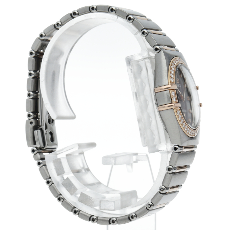 ピンクゴールドとステンレスのコンビモデル。ピンクゴールドの柔らかい質感が全体的に落ち着いた雰囲気を与えています。また、ブラウンダイヤルが非常に個性的で、高級感あふれる雰囲気を持っています。こちらはコンステレーションミニよりもやや大きめのスモールサイズになります。