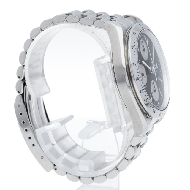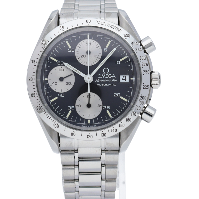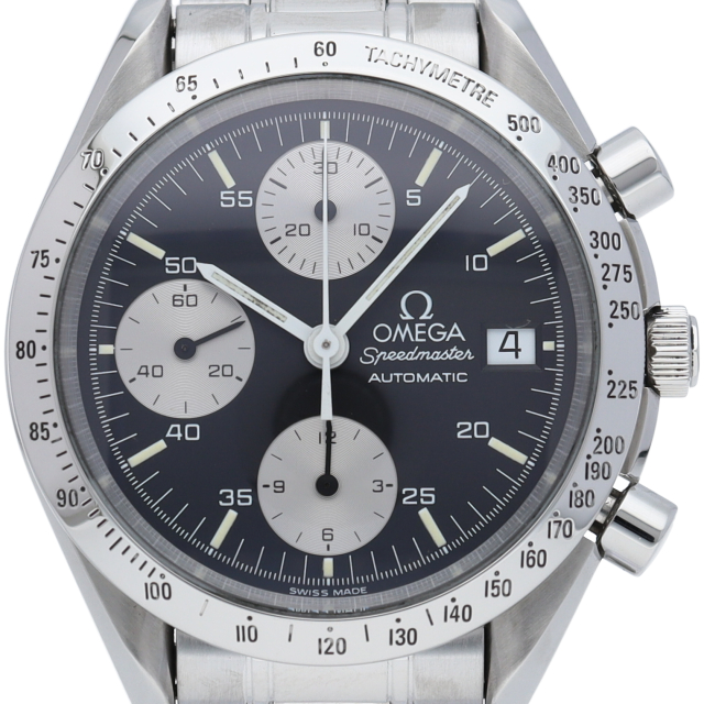 オメガの代表的な人気シリーズ「スピードマスター・デイト」。クロノグラフ・デイト表示機能付きと便利で実用性のある1本です。
