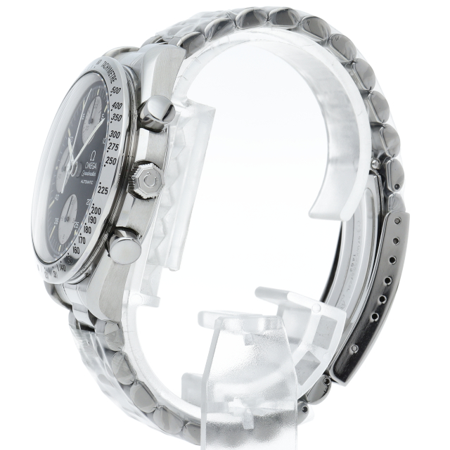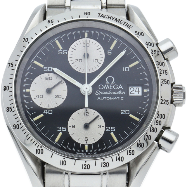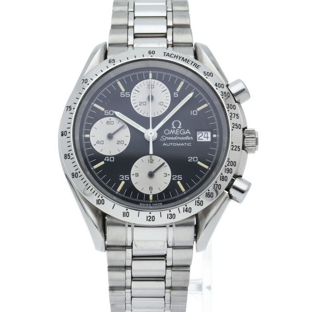 オメガの代表的な人気シリーズ「スピードマスター・デイト」。クロノグラフ・デイト表示機能付きと便利で実用性のある1本です。