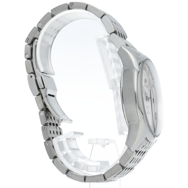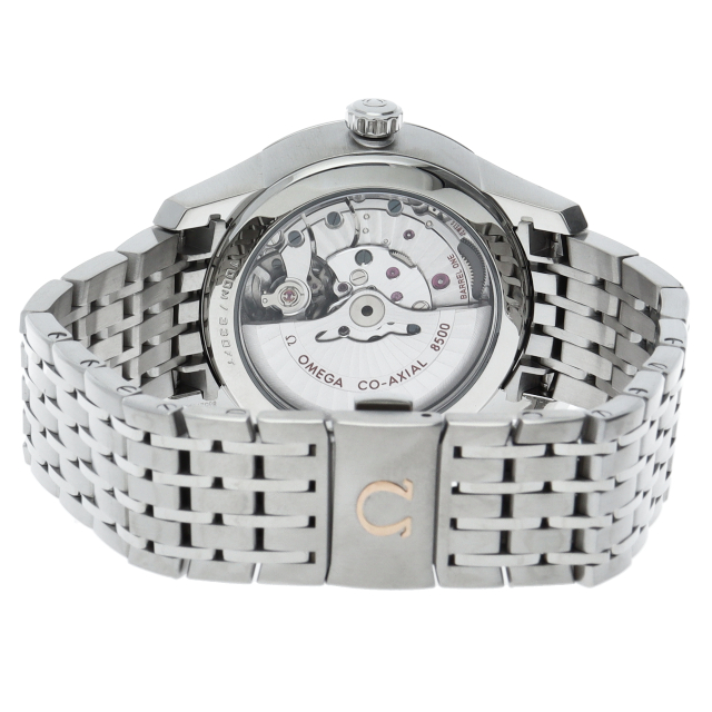 2つのゾーンに分かれたブラックのダイアルには、ローマ数字のインデックス、3時位置に月/日付窓が付属しています。ベゼルは、ステンレススティール製ブレスレットが付いた、直径41mmのステンレススティール製ケースに取り付けられています。コーアクシャル キャリバー8601搭載。