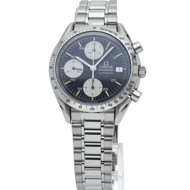 オメガの代表的な人気シリーズ「スピードマスター・デイト」。クロノグラフ・デイト表示機能付きと便利で実用性のある1本です。