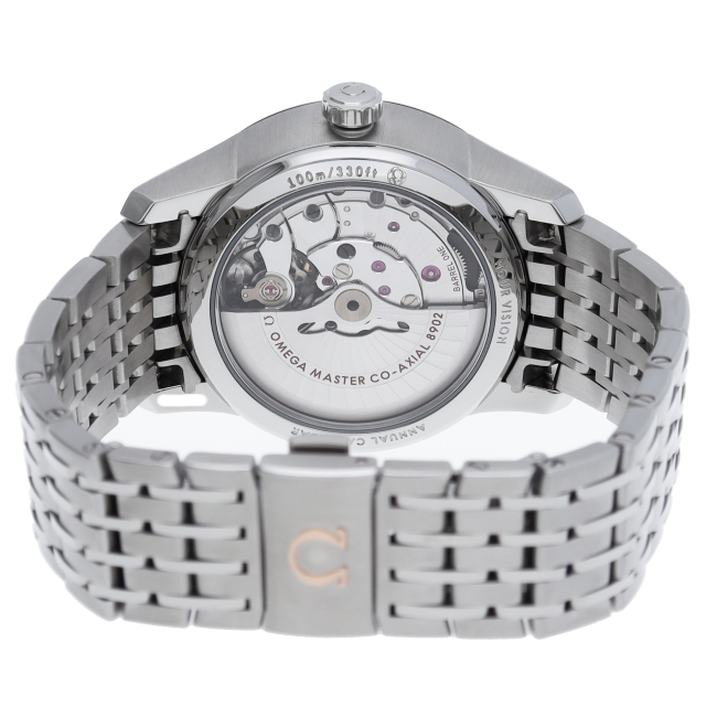 年次カレンダー機能を備えた、コーアクシャル マスタークロノメーター 「キャリバー8902」搭載 15000ガウスまでの超高耐磁性を備えたムーブメントです。また、ゼンマイを収めた香箱車を2つ備え、55時間のパワーリザーブを実現しました。