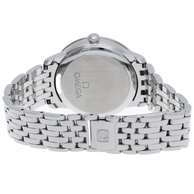 オメガのデ・ヴィル。 シンプルなデザインが全体的に落ち着きのある雰囲気を醸し出しています。 ブレスレットのしなやかな作り、全面鏡面仕上げの艶やかな存在感、文字盤の作りの高級感など、とても美しい時計です。文字盤は人気のホワイトシェル仕様。 どんなコーディネートでも相性の良いモデルですのでフォーマルにもカジュアルにもお使い頂けます。