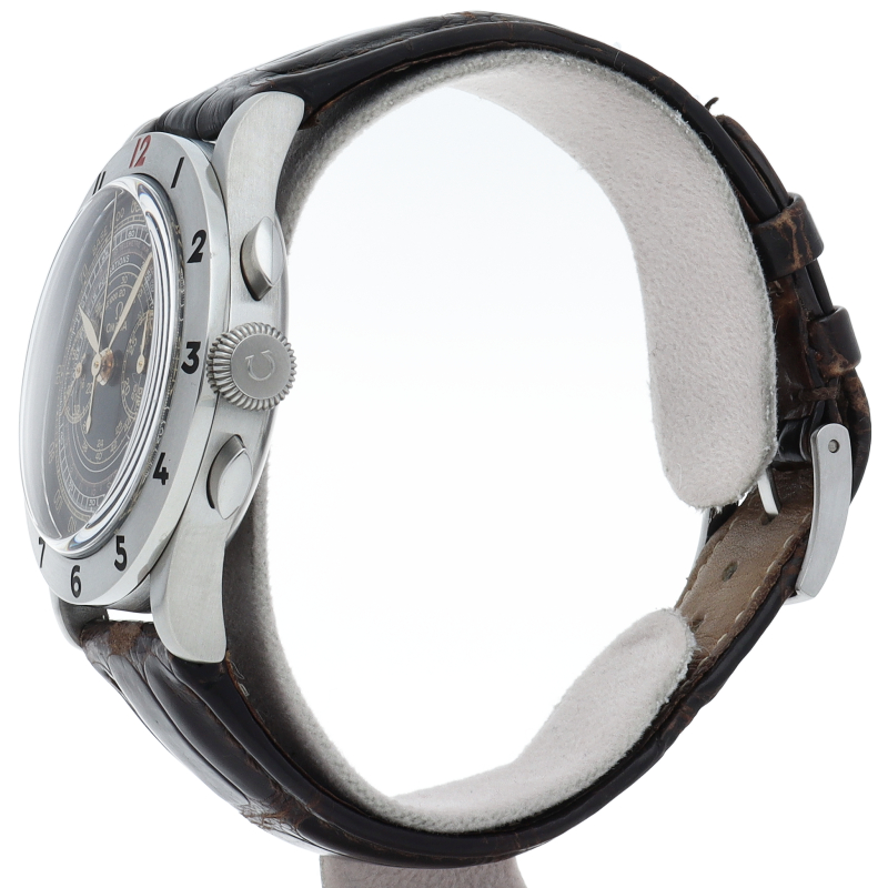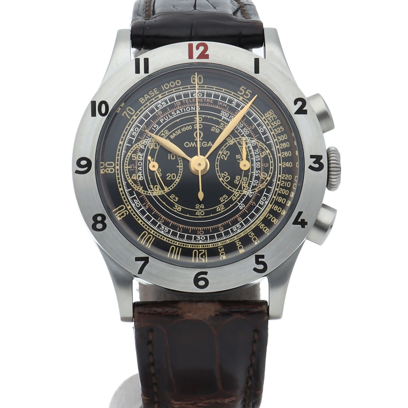 半世紀以上経た歴史的にも重要な意味を持つタイムピースをオメガミュージアムコレクションから厳選し、当時のデザインに最新技術を投入して復刻された限定モデルです。こちらは、1945年に登場したタキメーター・テレメーター・パルスメーターを表示したクロノグラフを復刻したモデルです。