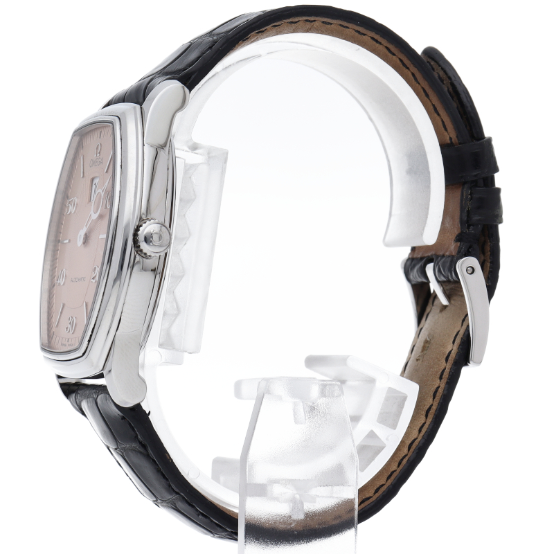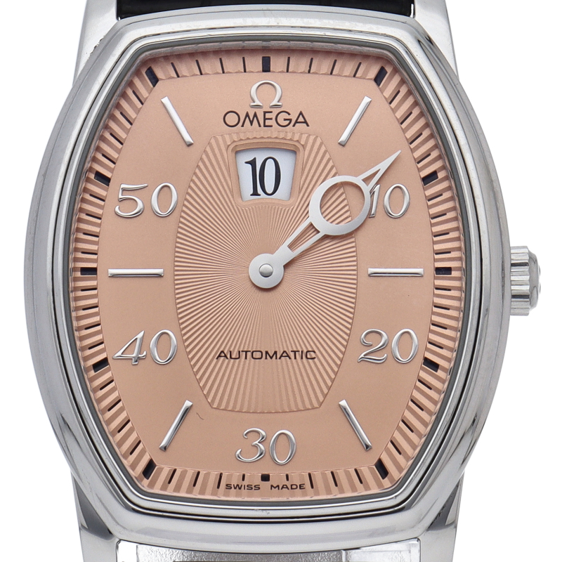 オメガのデ・ヴィル。こちらのモデルは、秒針が無く、針が分針のみで12時側の窓の数字が~時を表しています。現在は生産は終了し、出回っている数も非常に少ない希少性の高いモデルです。