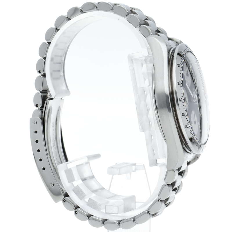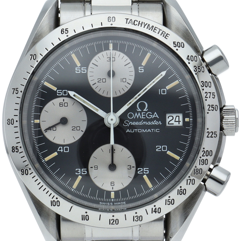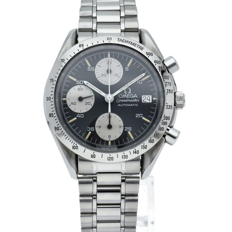 オメガの代表的な人気シリーズ「スピードマスター・デイト」。クロノグラフ・デイト表示機能付きと便利で実用性のある1本です。