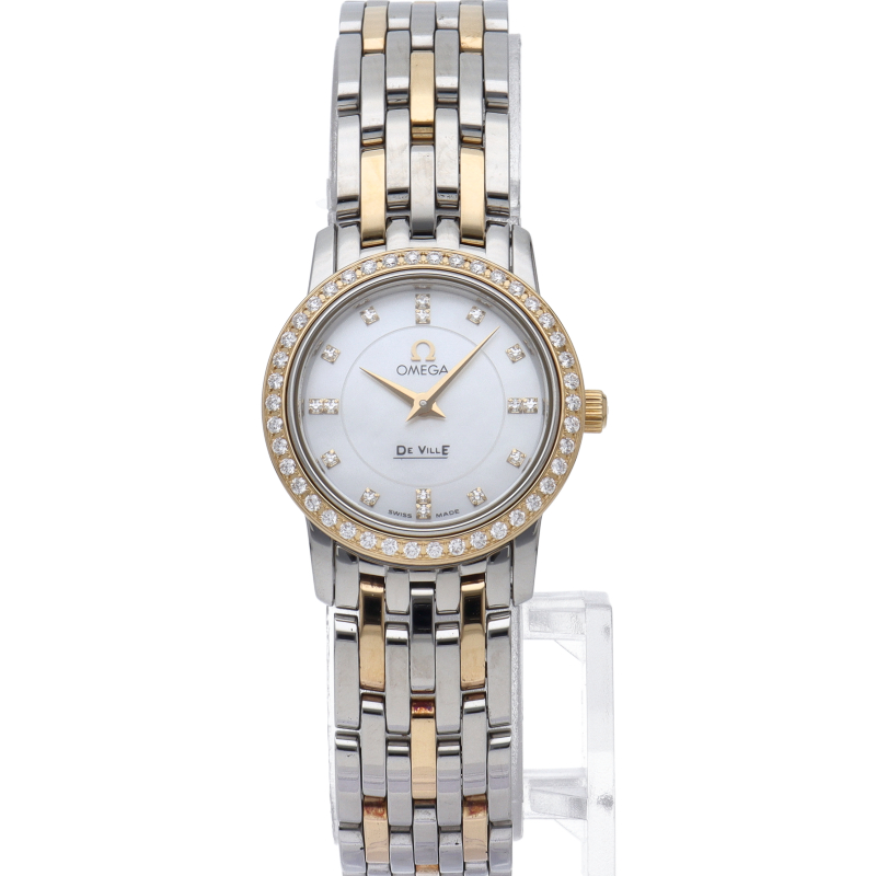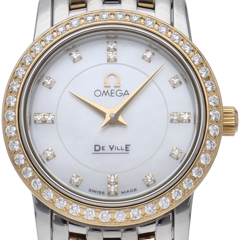 オメガのドレスウォッチシリーズで人気の高い「デビル」。小さいケースに贅沢に使われたダイヤベゼルと文字盤のシェルがキュートで豪華な1本です。