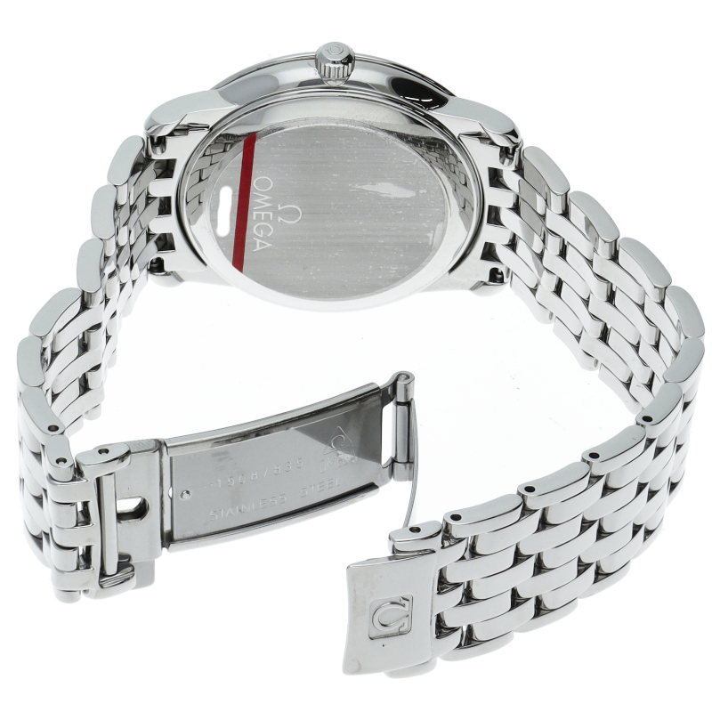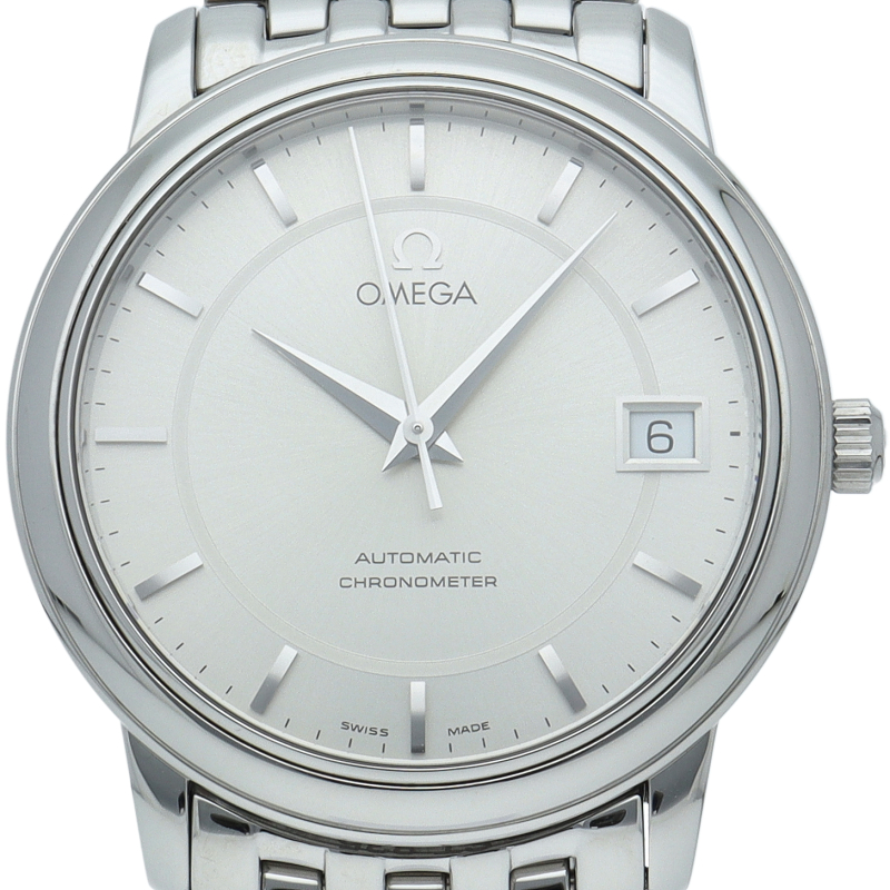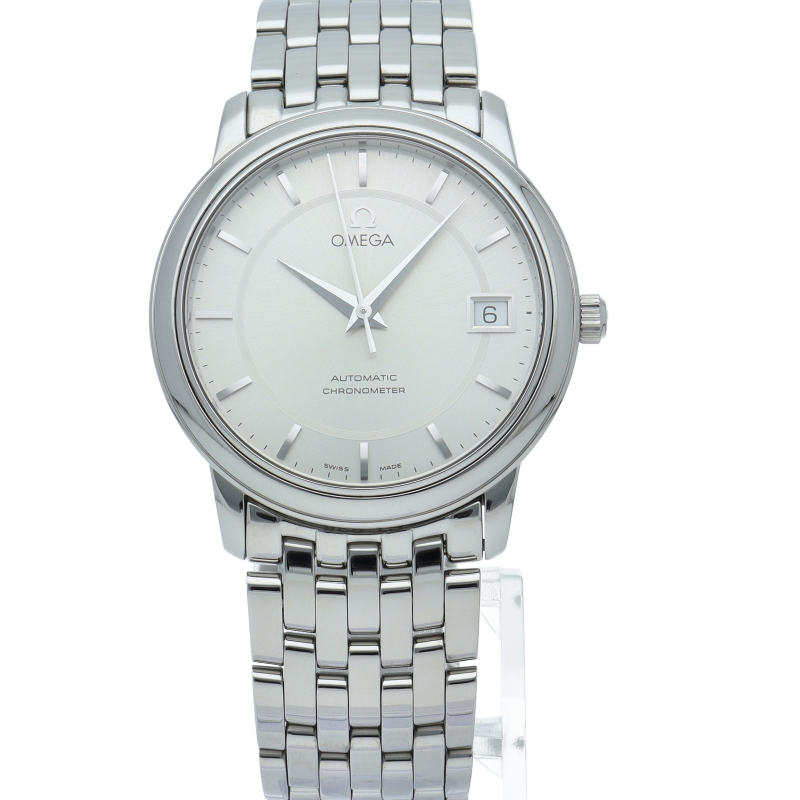 「オメガ デ・ヴィル プレステージ」コレクションは、そのクラシカルでエレガントなデザインが、多くのオメガ愛好家を惹きつけています。これらのタイムピースは、タイムレスで高級感のある仕上がりを施したシンプルなスタイルが特徴となっています。光沢を放つホワイトダイアルには、ポリッシュ仕上げが施されたブラックのローマ数字とカボションがあしらわれています。
