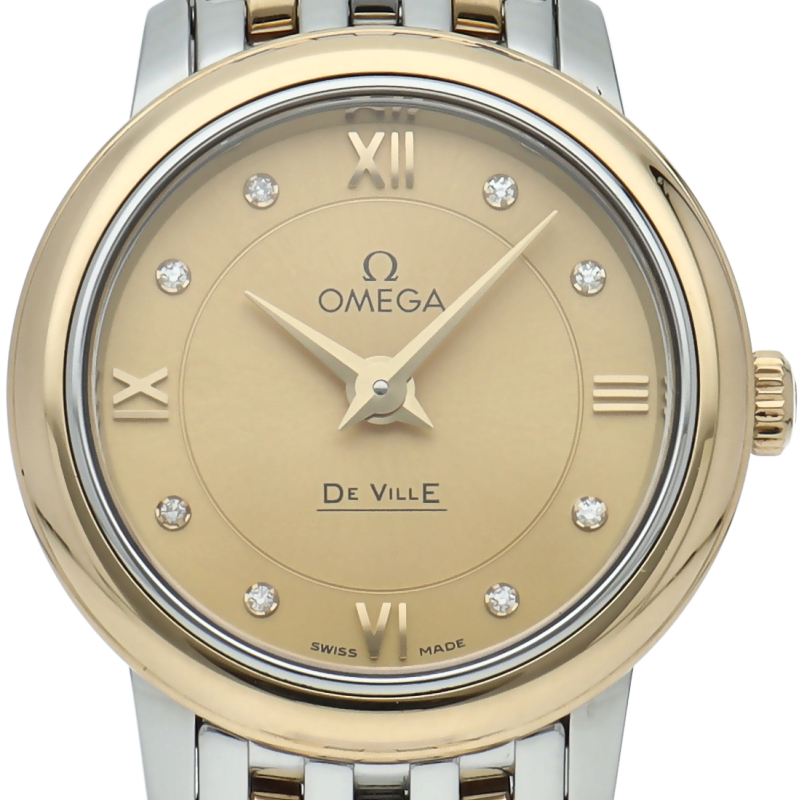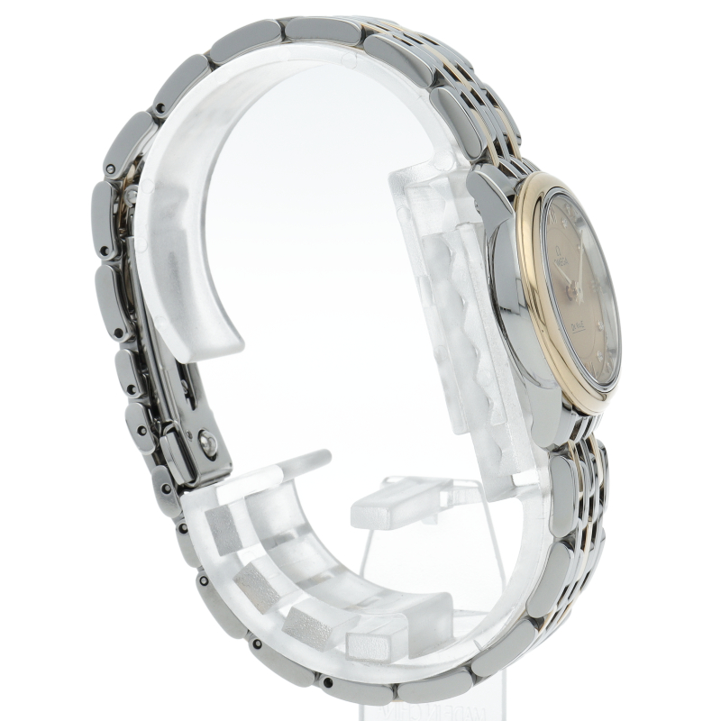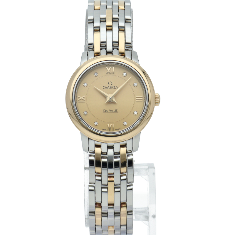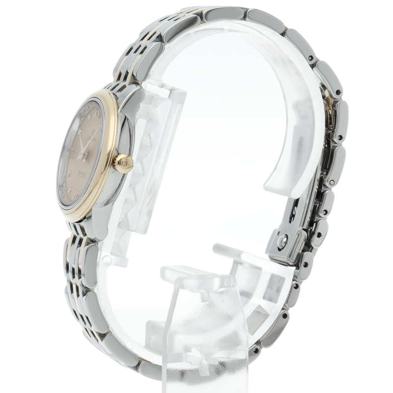 エレガントかつ時流に流されないクラシカルな雰囲気を纏った“デビル プレステージ”コレクション。明るい印象のシャンパーニュダイアル上に8Pダイヤモンドインデックスを配しています。イエローゴールドとステンレススティールを巧みに組み合わせた、レディースモデルらしい華やかなデザインです。