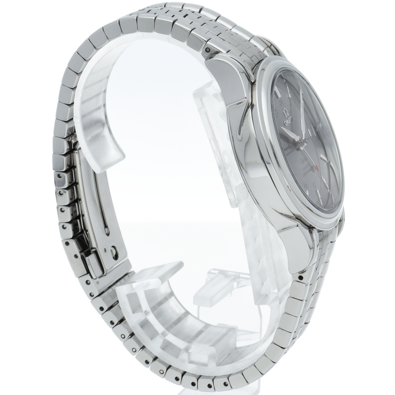 フランス語で「都会の」という意味をネーミングとしたコレクションが「デ・ヴィル」です。オメガの誇る、革新的で画期的なムーブメント機構、「コーアクシャル」を搭載。従来の脱進機を重ねることにより、パーツの摩擦を軽減させ、約10年間オーバーホールなしで精度を保つことが可能なムーブメントです。