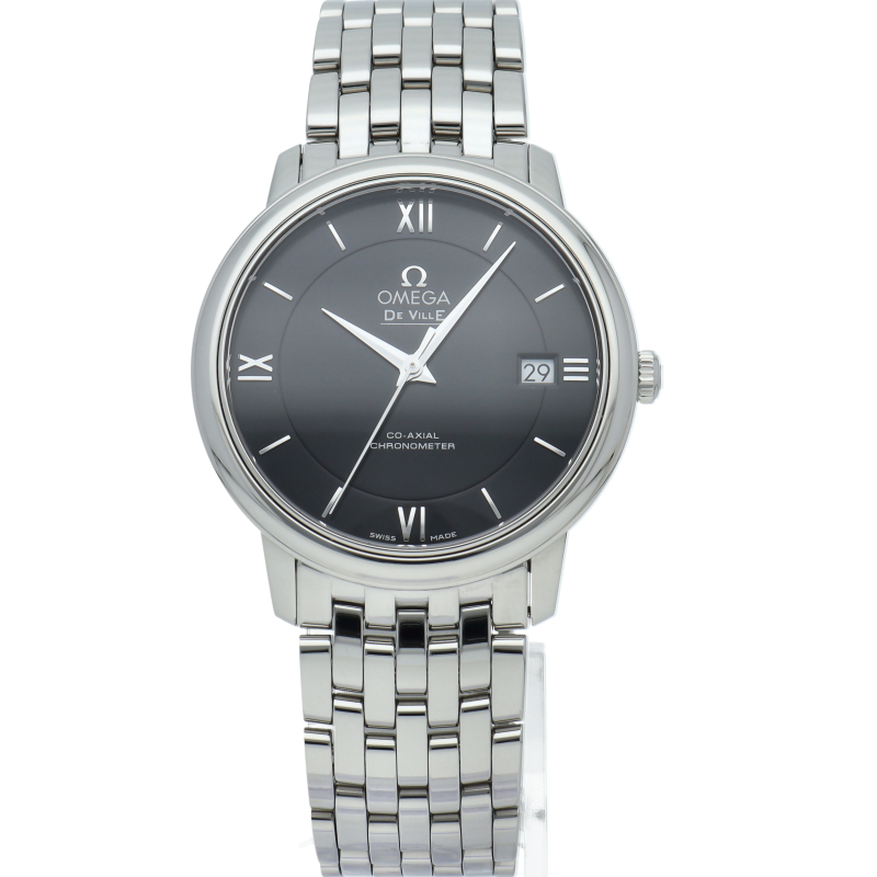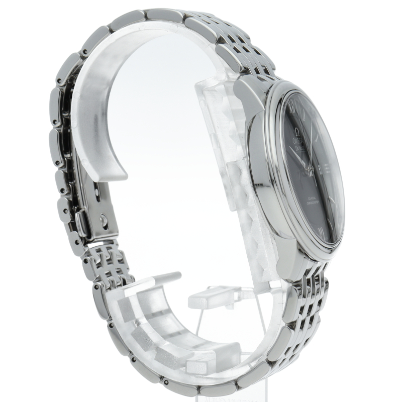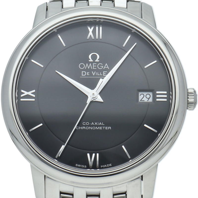 「デ・ヴィル プレステージ コーアクシャル」コレクションは、そのクラシカルでエレガントなデザインが、多くのオメガ愛好家を惹きつけています。ベゼルは、ステンレススティール製ブレスレットが付いた、直径27.4mmのステンレススティール製ケースに取り付けられています。高性能クォーツムーブメント、オメガ キャリバー1376搭載。
