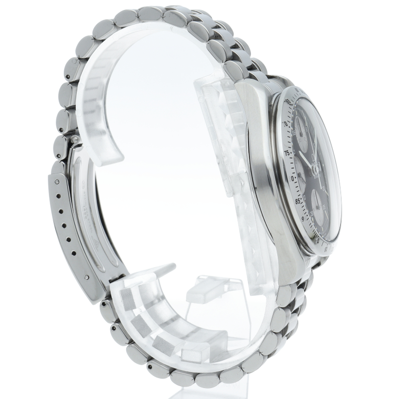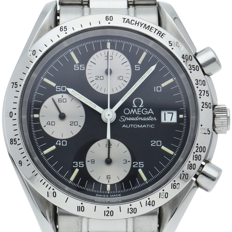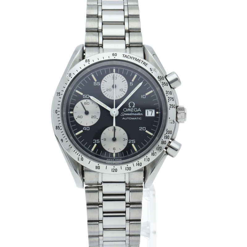 オメガの代表的な人気シリーズ「スピードマスター・デイト」。クロノグラフ・デイト表示機能付きと便利で実用性のある1本です。
