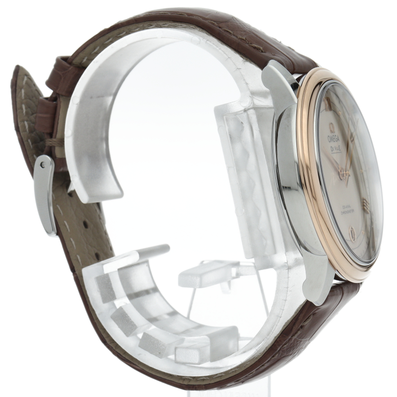 プレーンでオーソドックスなデザインの「デ・ヴィル プレステージコーアクシャルクロノメーター」。直径36.8mmのケースには、オメガが誇るコーアクシャル・エスケープメントのCal.2500を搭載しています。