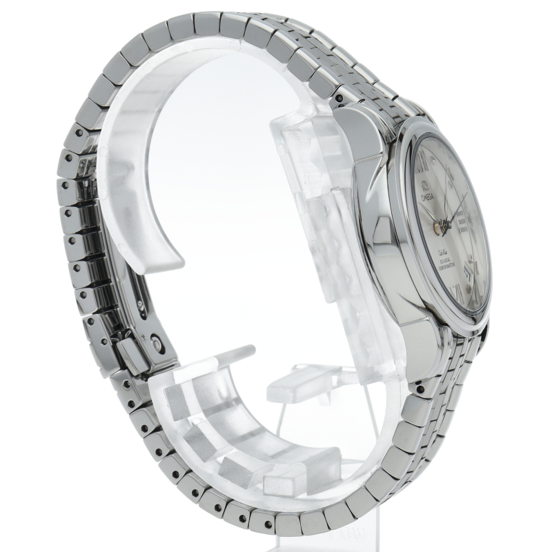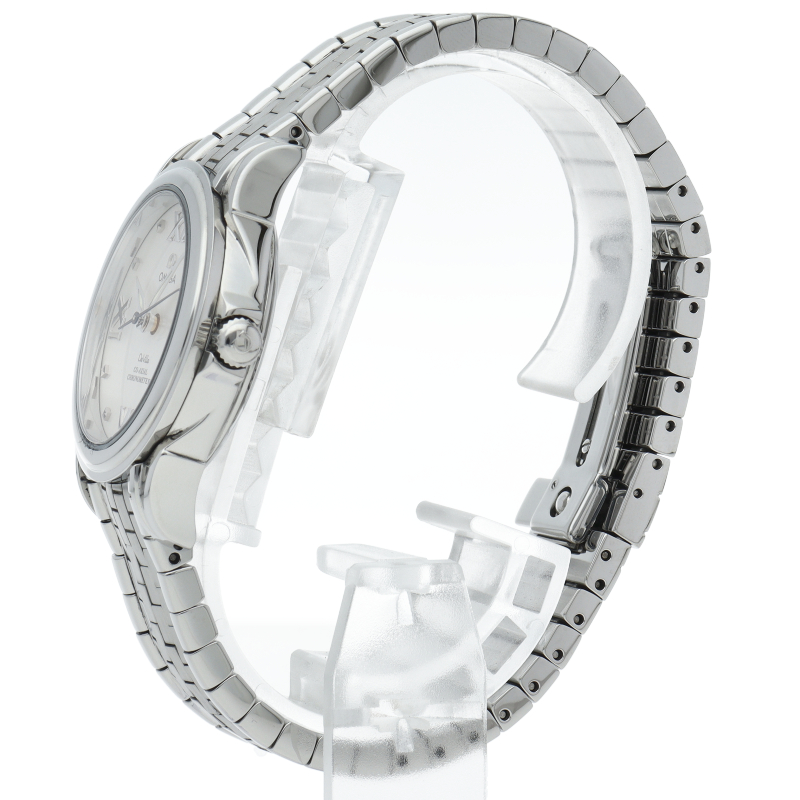 「デ・ヴィル プレステージ コーアクシャル」コレクションは、そのクラシカルでエレガントなデザインが、多くのオメガ愛好家を惹きつけています。ベゼルは、ステンレススティール製ブレスレットが付いた、直径32.5mmのステンレススティール製ケースに取り付けられています。