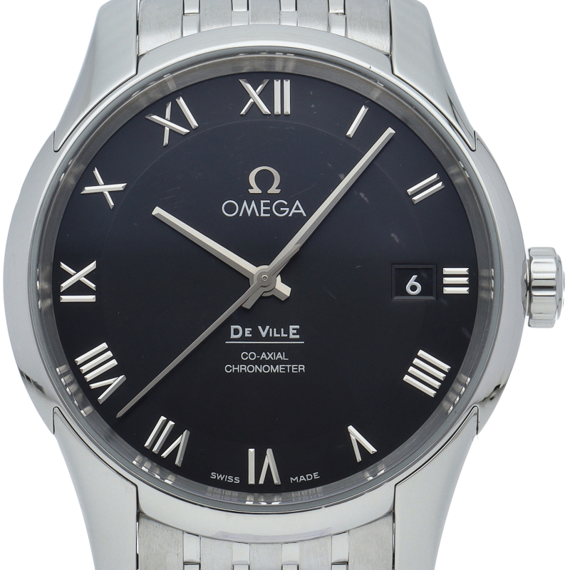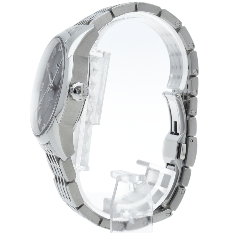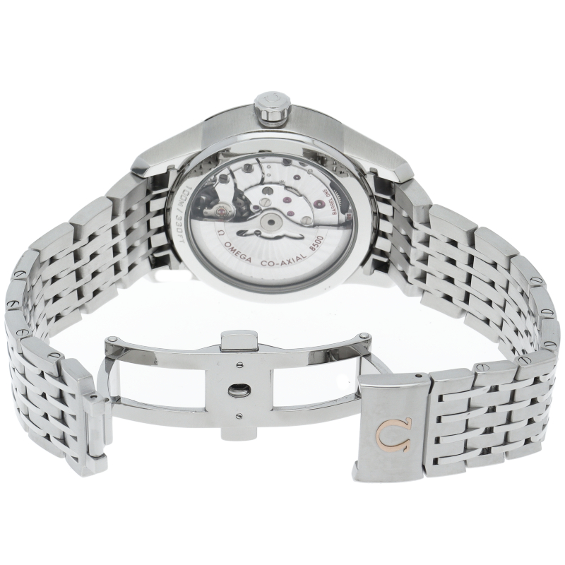 プレーンでオーソドックスなデザインの「デ・ヴィル プレステージ」。直径41mmのケースには、オメガが誇るコーアクシャル キャリバー8500が搭載されており、シースルーケースバックから眺めることができます。