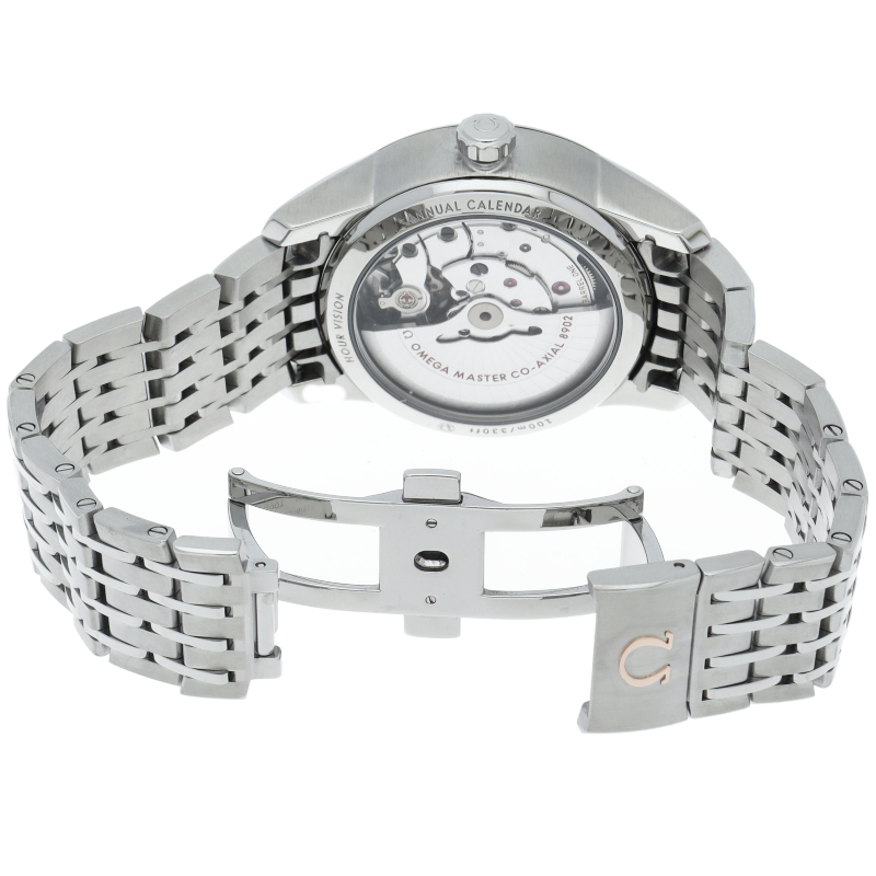 年次カレンダー機能を備えた、コーアクシャル マスタークロノメーター 「キャリバー8902」搭載 15000ガウスまでの超高耐磁性を備えたムーブメントです。また、ゼンマイを収めた香箱車を2つ備え、55時間のパワーリザーブを実現しました。