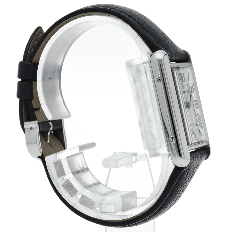 1917年、ルイ・カルティエは“タンク” ウォッチを創りました。この時、ひとつの伝説が生まれたのです。最初のプロトタイプはジョン・パーシング将軍に贈られ、その数年後、1919年に“タンク” ウォッチが発売されました。シャープな角を持つフラットなケースの縦枠の下アタッチメントとの接点を隠すというユニークなデザインがその美しさの秘密。シンプルなラインが、自由でエレガントなエスプリを表現しています。