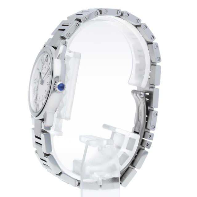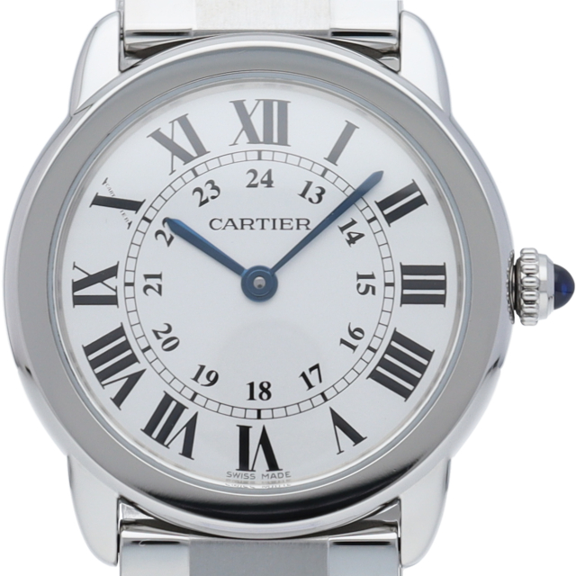 ベーシックなデザインで人気がある「ロンド ソロ」からブレスレットモデルが登場いたしました。シンプルな美しさのあるモデルですが、ブルースチールの針やローマンインデックスなどカルティエらしさも溢れたデザインです。