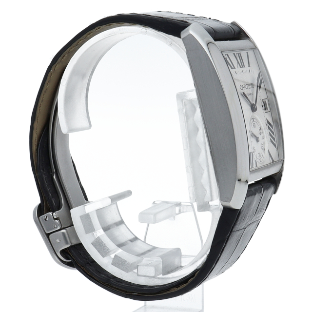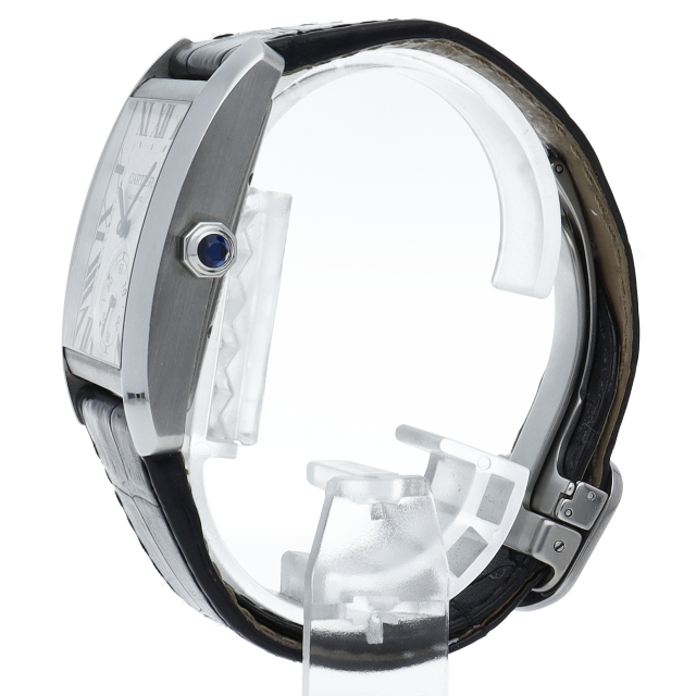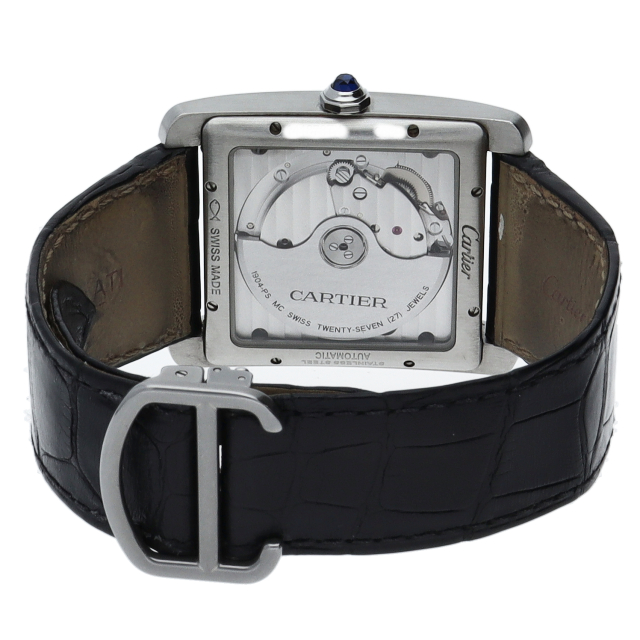 タンクMCは戦車をモチーフにしたタンクのデザインコードはそのままに、より男性的な魅力が感じられるモデル。手元にほどよいボリューム感を見せつつも非常に快適な装着感です。リューズにはブルースピネルを装飾するなどカルティエらしいエレガントな意匠もさりげなく。ビジネススタイルにも格好よく映えて、洗練された印象を広げます。