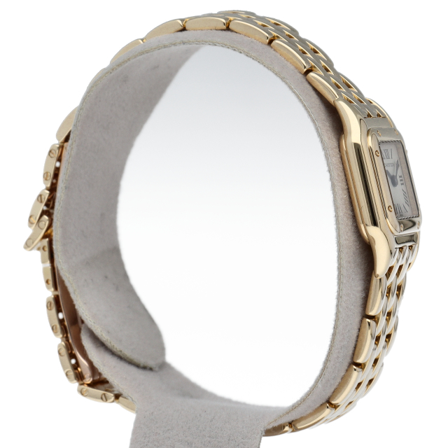 多くの女性を虜にし、根強い人気を誇るパンテール。既に生産は終了しておりユーズド市場でも見かける事が少なくなってきました。こちらのモデルはイエローゴールドケースを使用し、高級感あふれるカルティエらしい一本となっています。