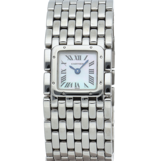 カルティエのブレスレット感覚で着用できる「リュバン」。文字盤にはホワイトシェルが使用され高級感溢れる仕上がりが特徴です。