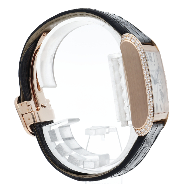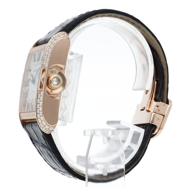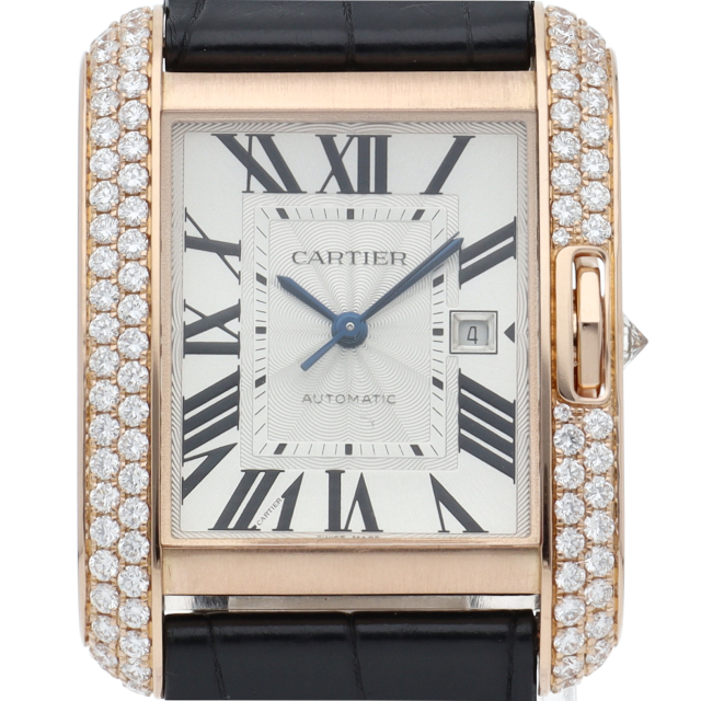 シンプルながら洗練されたデザインで、高級感を漂わせつつクラシカルな雰囲気も持ち合わせる『タンクアングレーズ』。ケースにダイヤモンドを敷き詰めた豪華モデル。過去より培われたジュエラーならではの気品漂う美しい逸品です。