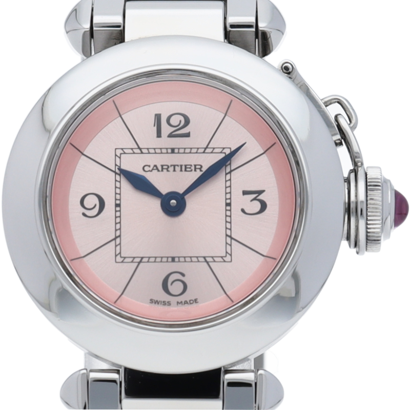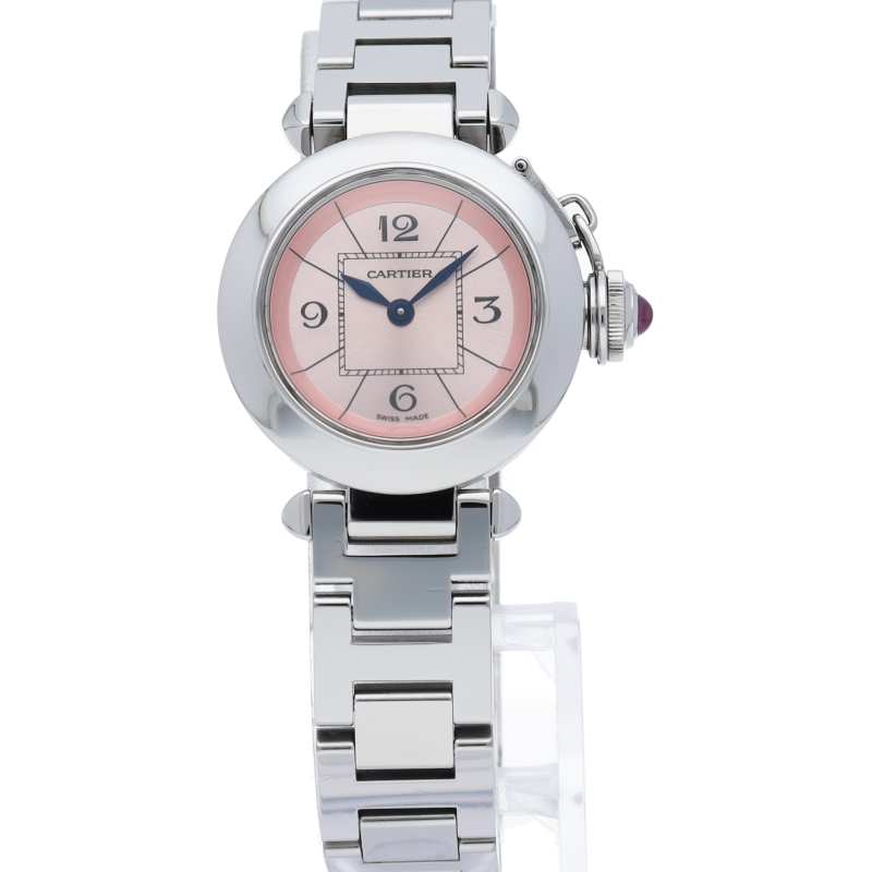 カルティエ「パシャ」シリーズの新型モデル、ミスパシャ。シンプルで凛とした印象の中に可愛らしいさも加え、スタイルを選ばずに使える1本。