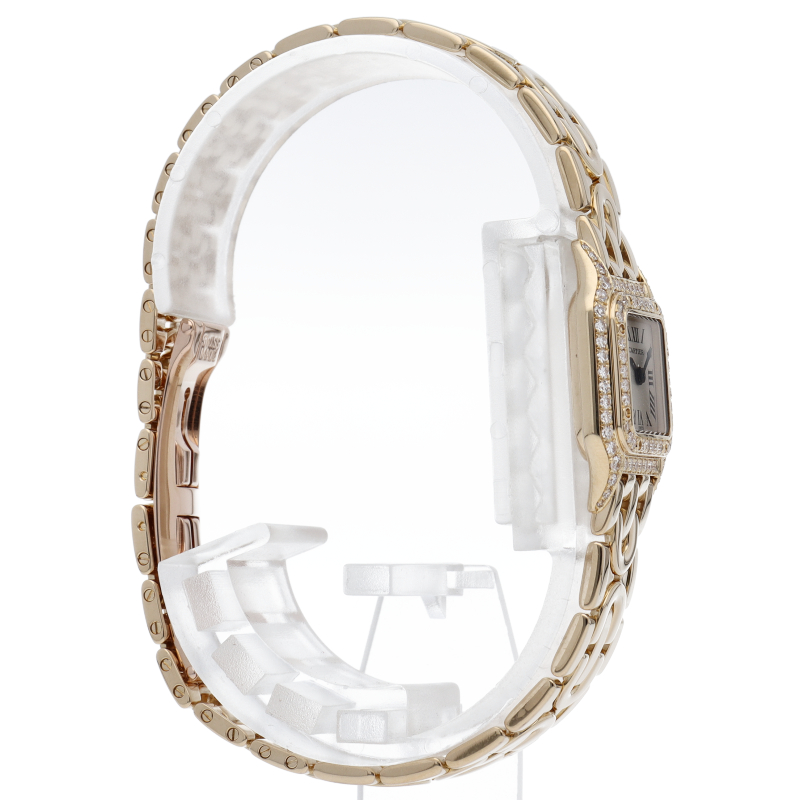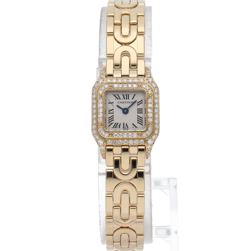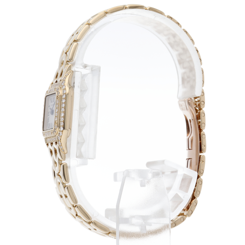 カルティエの生産終了となった人気モデル「パンテール」。シンプルかつ上品なデザインでスタイルを選ばずにご使用いただけます。ケース、ブレスの全面にイエローゴールドを使用し、ベゼルにはダイヤが施された豪華な逸品です。