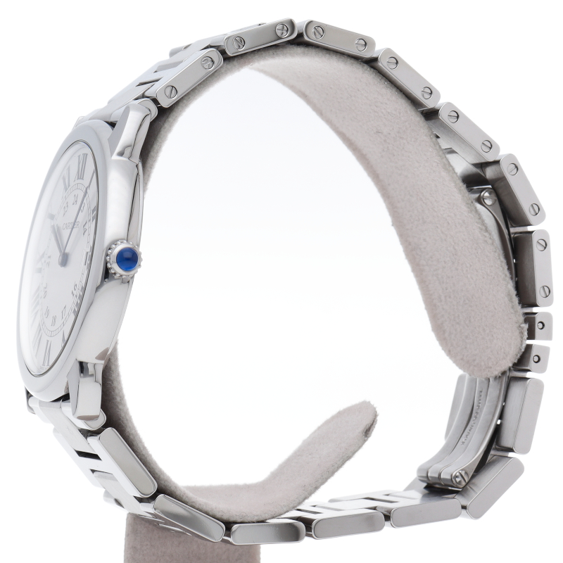 ベーシックなデザインで人気がある「ロンド ソロ」からブレスレットモデルが登場いたしました。シンプルな美しさのあるモデルですが、ブルースチールの針やローマンインデックスなどカルティエらしさも溢れたデザインです。