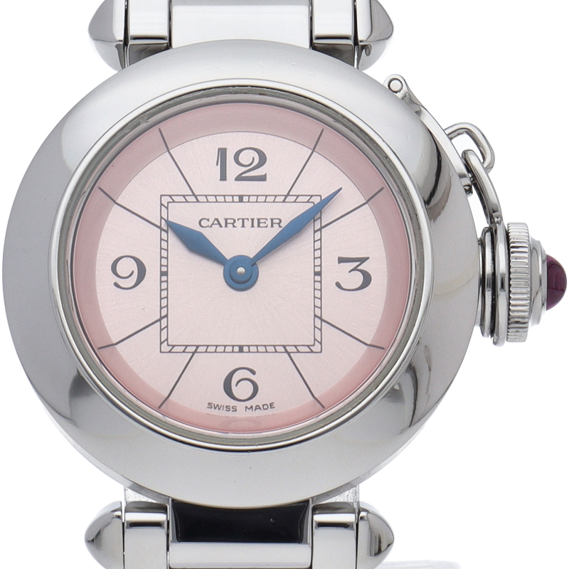 カルティエ「パシャ」シリーズの新型モデル、ミスパシャ。シンプルで凛とした印象の中に可愛らしいさも加え、スタイルを選ばずに使える1本。