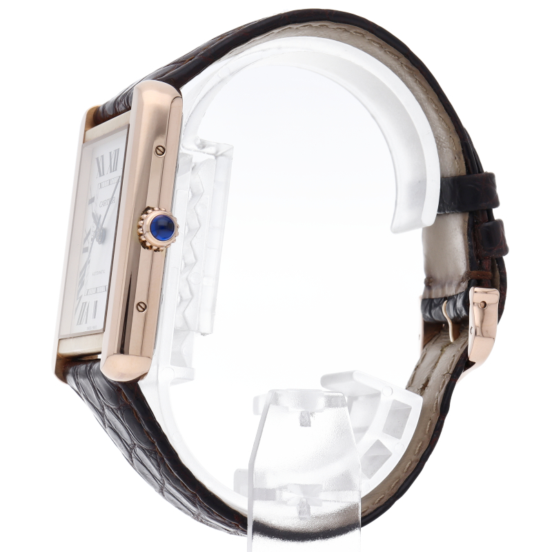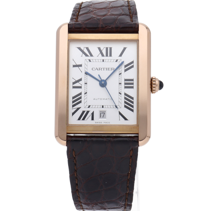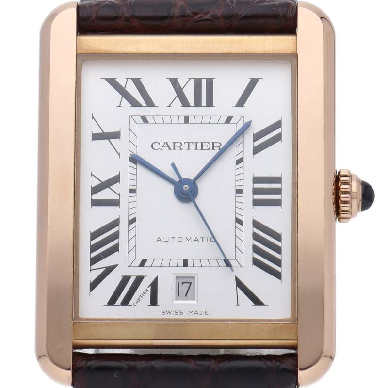 レギュレターケースが特徴のタンクソロは、シンプルでモダンなデザインと力強いローマンインデックスが魅力的なシリーズです。存在感抜群のXLサイズです。