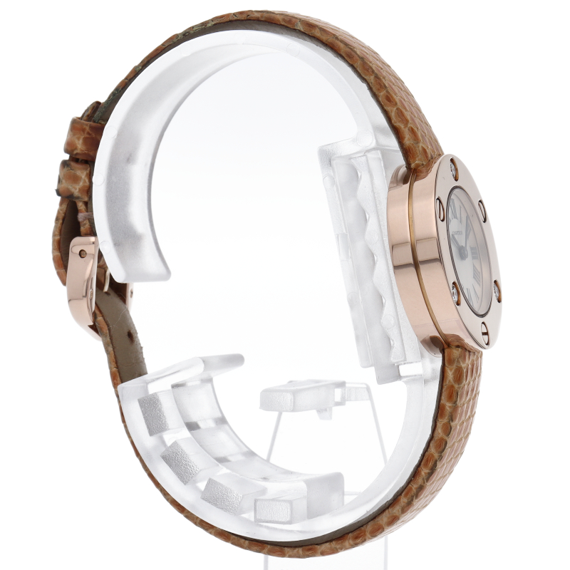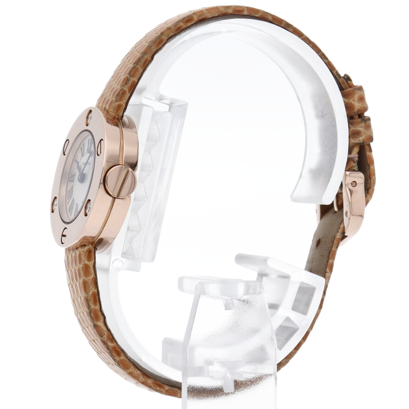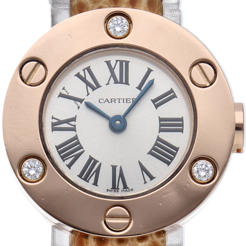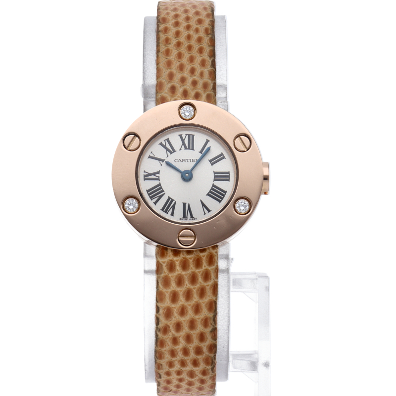 ラブシリーズから派生した「ラブ・ウォッチ」は、ブレスレットやリングの象徴性はそのままに、時と共鳴しあうモダンな造形に心惹かれるモデルです。ベゼルに配された3Pのダイヤがアクセントになっております。