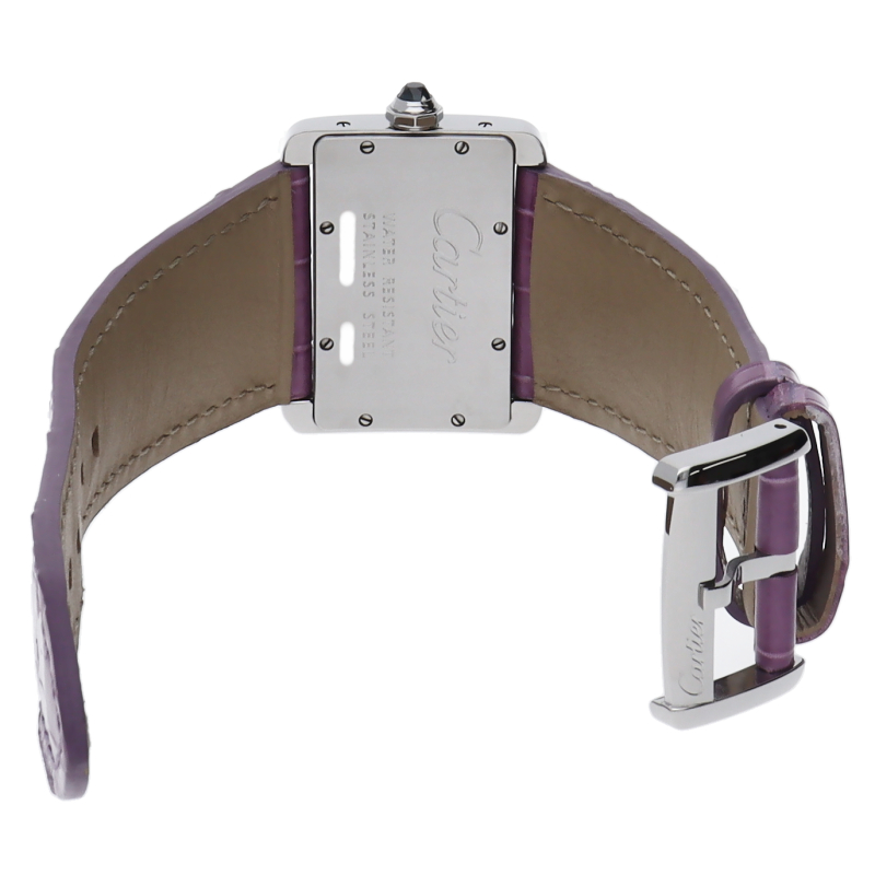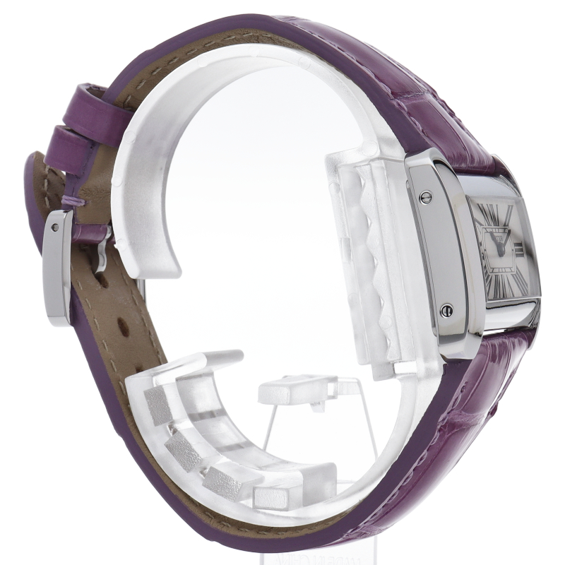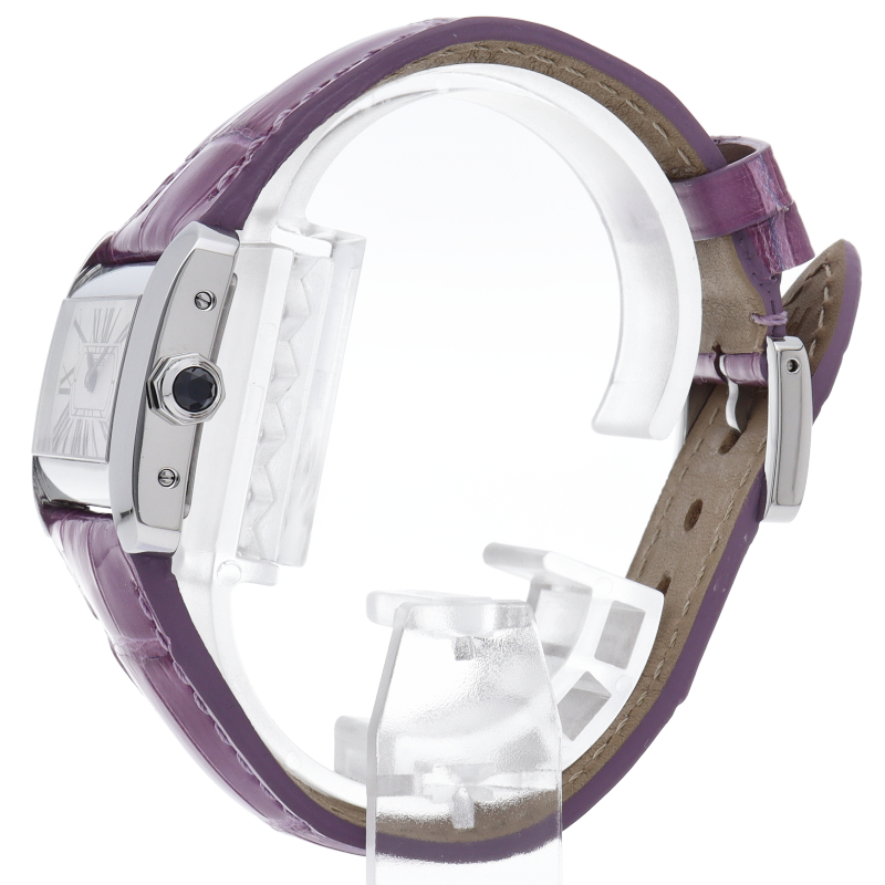 存在感抜群の横長のケースに、カルティエらしいローマインデックスがデザインされた文字盤がおしゃれな逸品。このようなワイドスクリーンケースは珍しいので大変おすすめです。