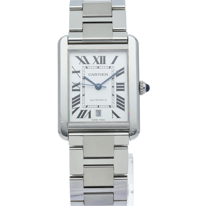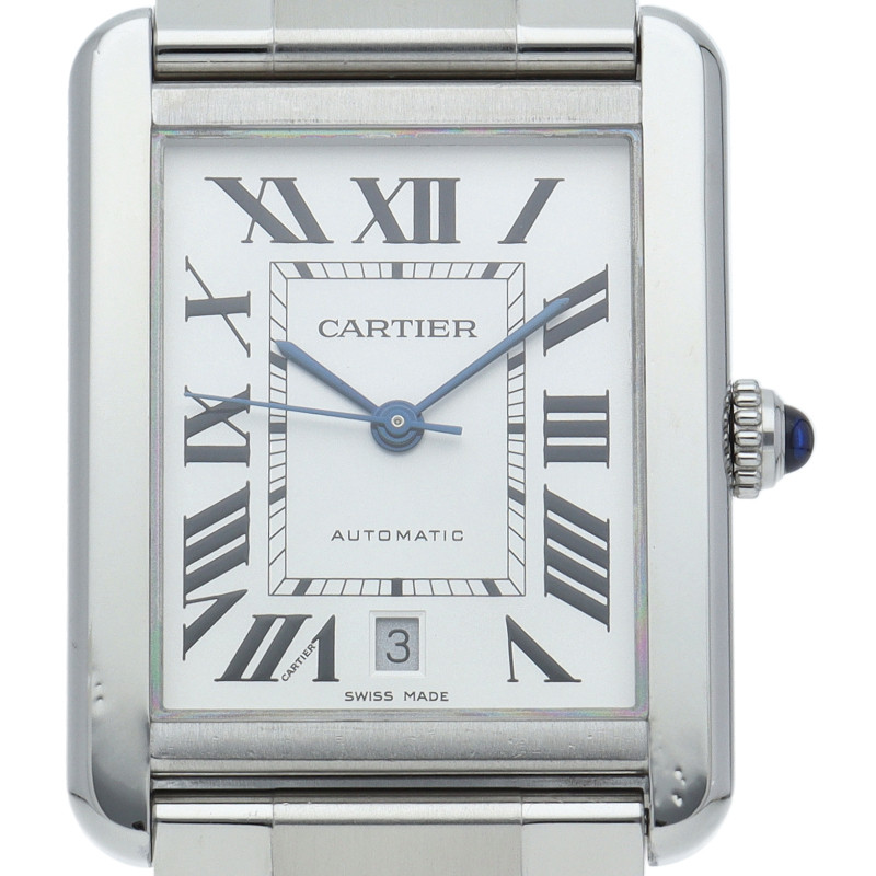 レギュレターケースが特徴のタンクソロは、シンプルでモダンなデザインと力強いローマンインデックスが魅力的なシリーズです。存在感抜群のXLサイズです。