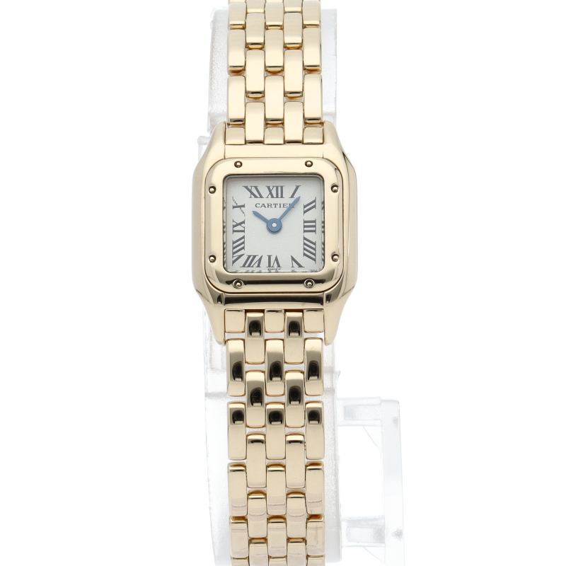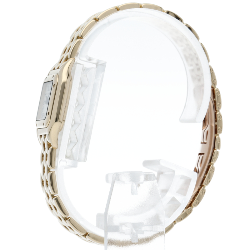 パンサーを意味する“パンテール”は、カルティエの数あるモデルの中でも名作と言われています。既に生産を終了しており、今もなお高い人気を誇っています。こちらはケース、ブレスにイエローゴールドを使用したモデルです。シンプルながらもフェミニンな雰囲気で手元を華やかに演出してくれます。