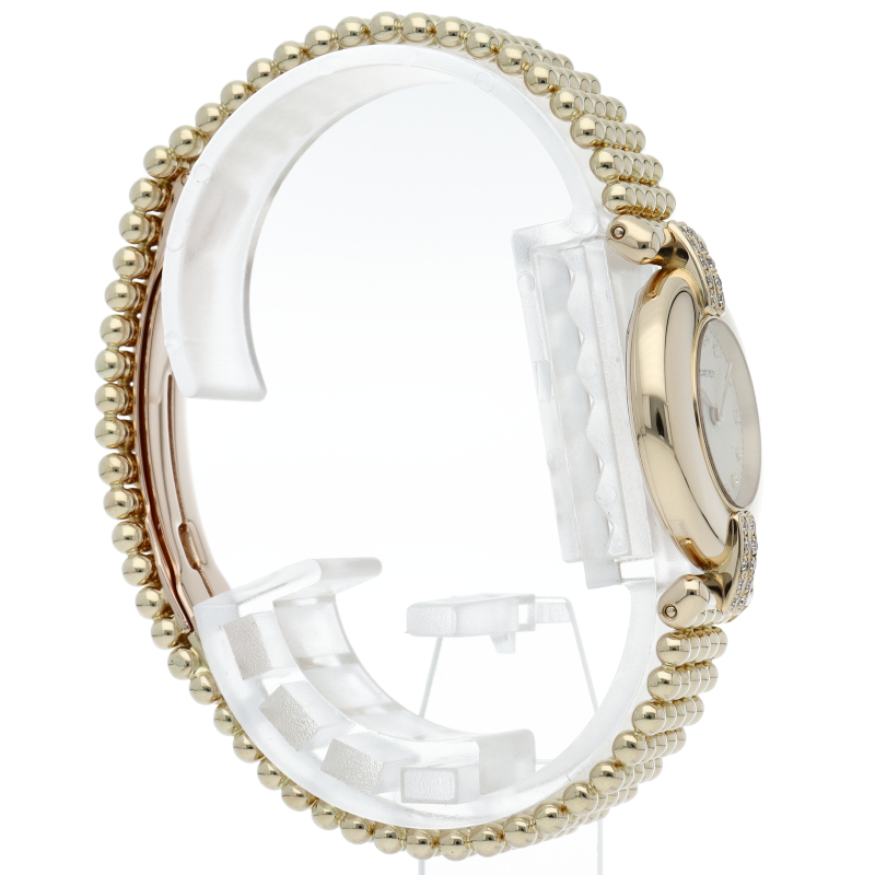 ローマのコロッセオ(円形競技場)から名づけられ、生産が終了した今も根強い支持を得ている「コリゼ」。華やかさがありアイヴォリー文字盤の優しい雰囲気と合わさり、可愛らしくも上品な印象を持ちます。