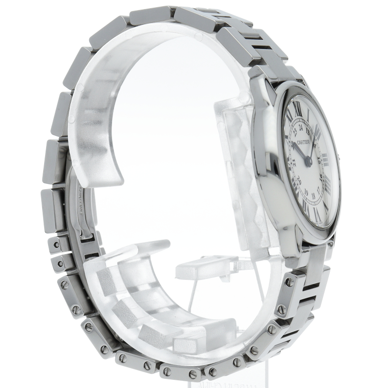 ベーシックなデザインで人気がある「ロンド ソロ」からブレスレットモデルが登場いたしました。シンプルな美しさのあるモデルですが、ブルースチールの針やローマンインデックスなどカルティエらしさも溢れたデザインです。