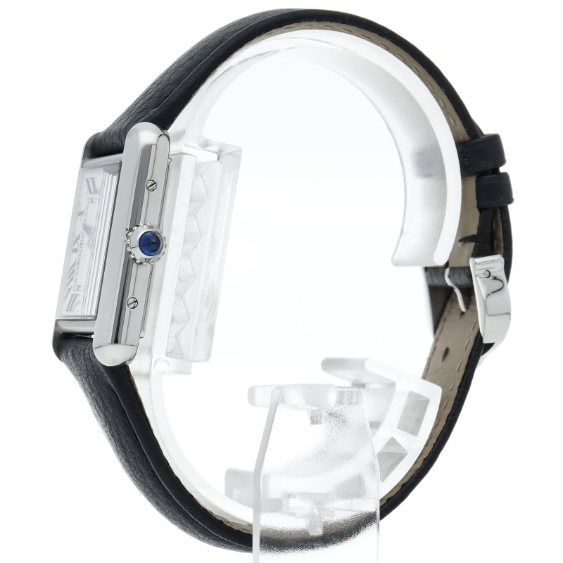 シャープな角を持つフラットなケースの縦枠の下アタッチメントとの接点を隠すというユニークなデザインがその美しさの秘密である「タンク マスト」。シンプルなラインが、自由でエレガントなエスプリを表現しています。
