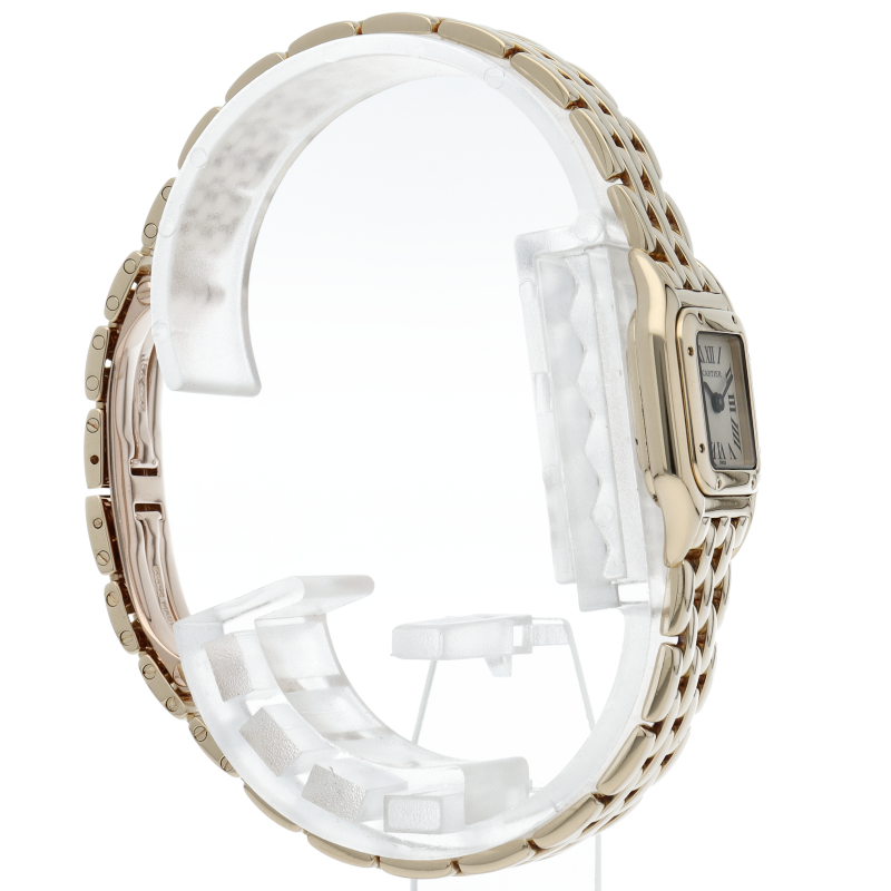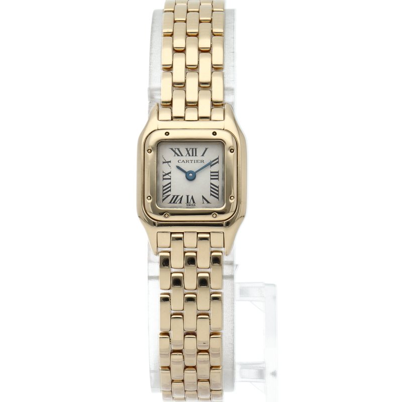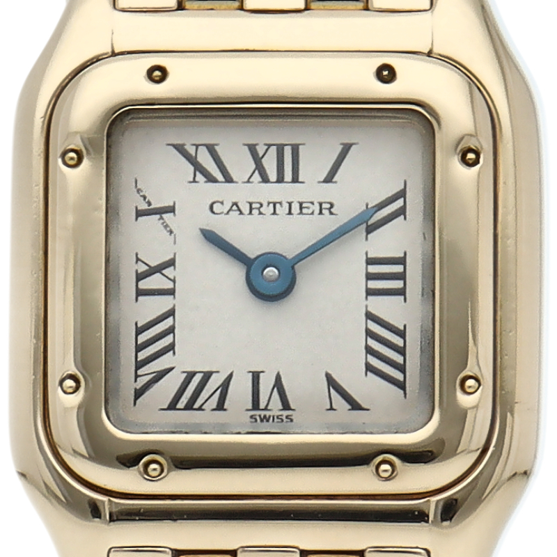 パンサーを意味する“パンテール”は、カルティエの数あるモデルの中でも名作と言われています。既に生産を終了しており、今もなお高い人気を誇っています。こちらはケース、ブレスにイエローゴールドを使用したモデルです。シンプルながらもフェミニンな雰囲気で手元を華やかに演出してくれます。