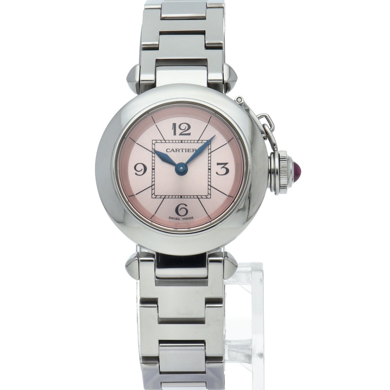 カルティエ「パシャ」シリーズの新型モデル、ミスパシャ。シンプルで凛とした印象の中に可愛らしいさも加え、スタイルを選ばずに使える1本。