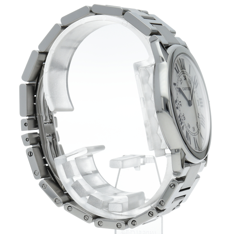 ベーシックなデザインで人気がある「ロンド ソロ」からブレスレットモデルが登場いたしました。シンプルな美しさのあるモデルですが、ブルースチールの針やローマンインデックスなどカルティエらしさも溢れたデザインです。