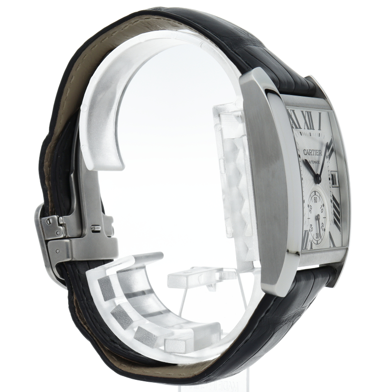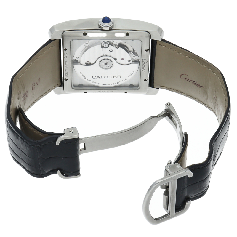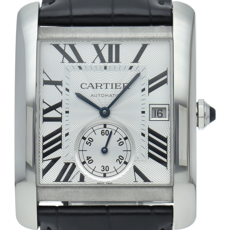 タンクMCは戦車をモチーフにしたタンクのデザインコードはそのままに、より男性的な魅力が感じられるモデル。手元にほどよいボリューム感を見せつつも非常に快適な装着感です。リューズにはブルースピネルを装飾するなどカルティエらしいエレガントな意匠もさりげなく。ビジネススタイルにも格好よく映えて、洗練された印象を広げます。