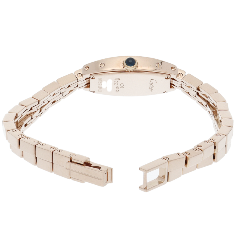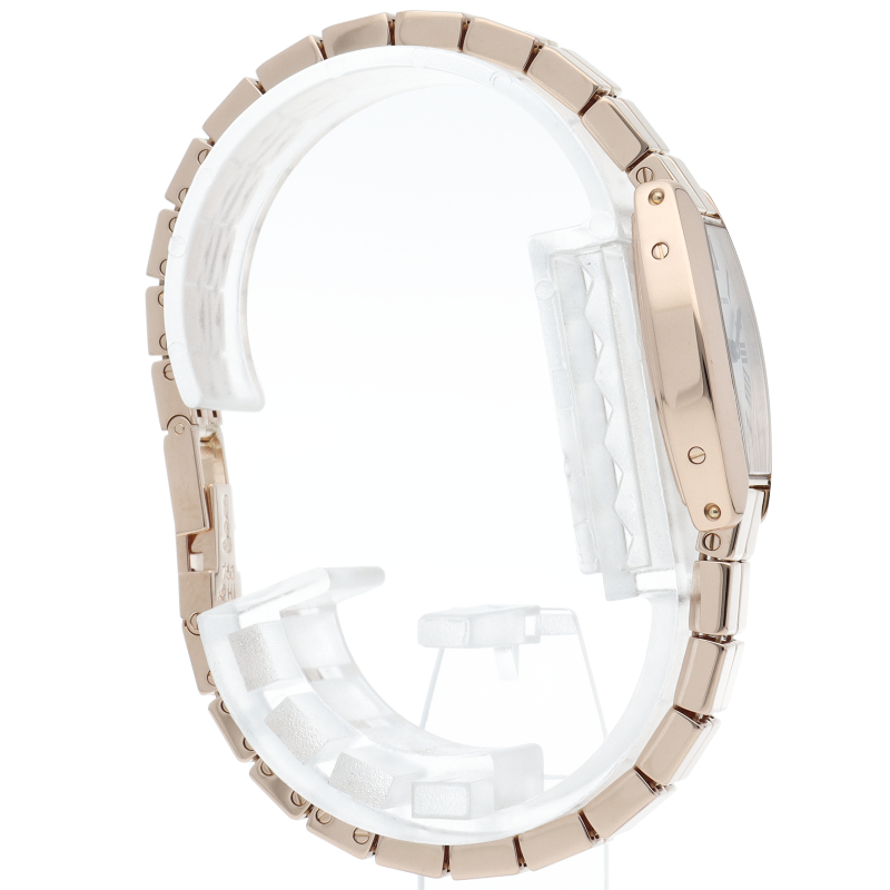 すでに生産終了となっている「ミニトノー ラニエール」のピンクゴールドモデル。長方形のリンクをつないだ2連ブレスレットはこのモデルならでは。しなやかな造りで、着け心地の良さを味わうことができます。