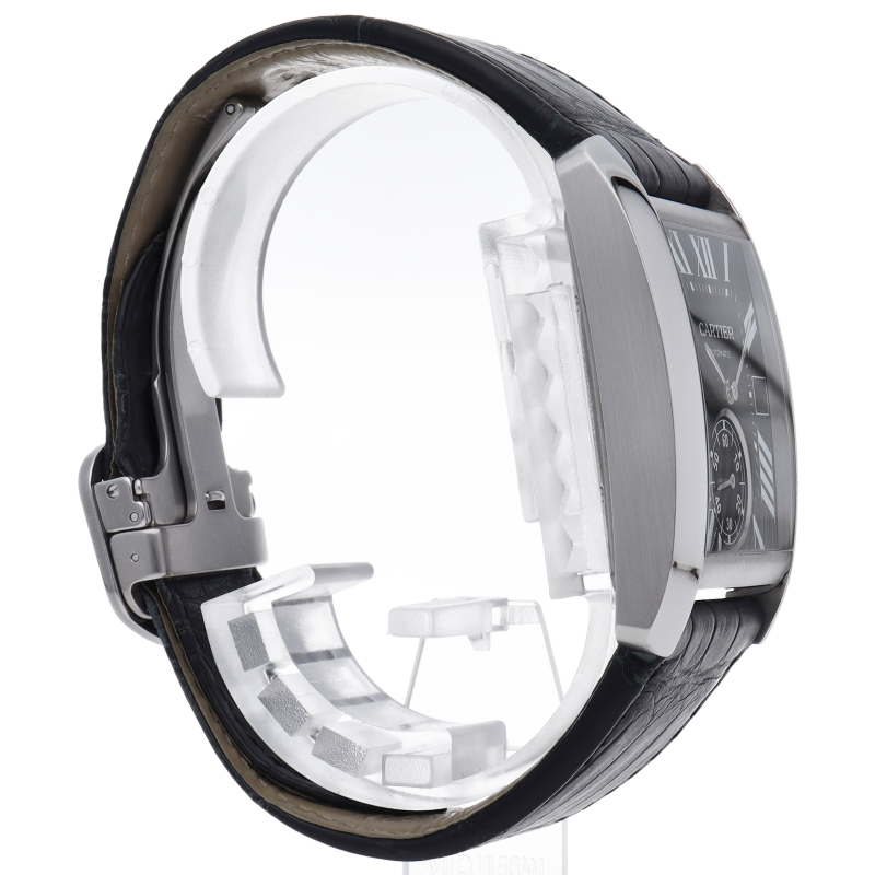 タンクMCは戦車をモチーフにしたタンクのデザインコードはそのままに、より男性的な魅力が感じられるモデル。手元にほどよいボリューム感を見せつつも非常に快適な装着感です。リューズにはブルースピネルを装飾するなどカルティエらしいエレガントな意匠もさりげなく。ビジネススタイルにも格好よく映えて、洗練された印象を広げます。