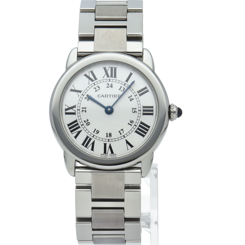 ベーシックなデザインで人気がある「ロンド ソロ」からブレスレットモデルが登場いたしました。シンプルな美しさのあるモデルですが、ブルースチールの針やローマンインデックスなどカルティエらしさも溢れたデザインです。
