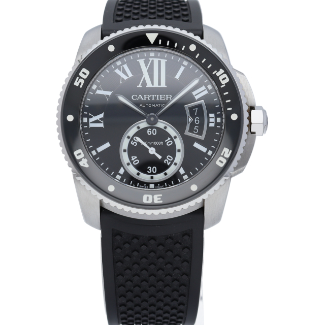 カリブルドゥカルティエ ダイバーは真のダイバーズウォッチ。ラバーブレスレット、極めて精度の高いADLCコーティングを施したスティール製逆回転防止ベゼル、潜水時間を把握させるスーパールミノバを塗布したインジケーターで、力強さと正確さを誇ります。
