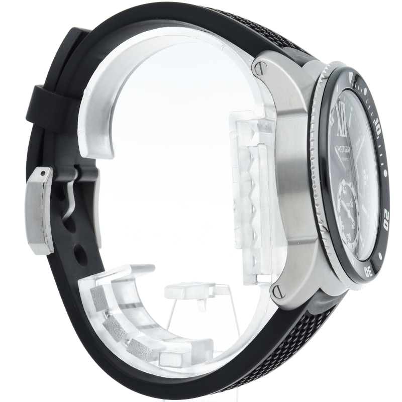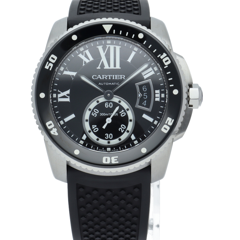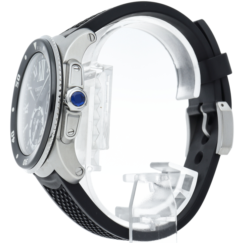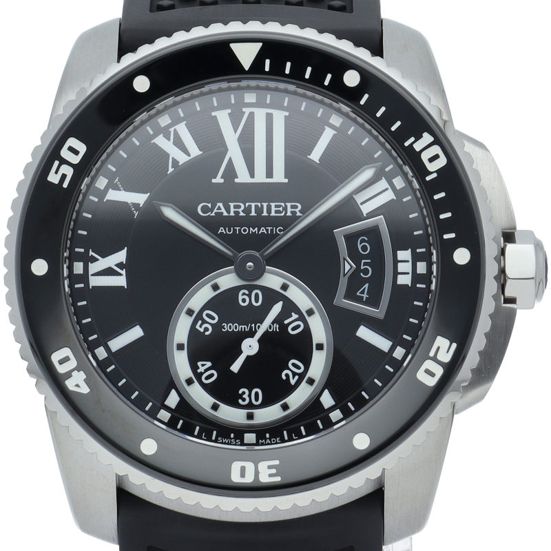 カリブルドゥカルティエ ダイバーは真のダイバーズウォッチ。ラバーブレスレット、極めて精度の高いADLCコーティングを施したスティール製逆回転防止ベゼル、潜水時間を把握させるスーパールミノバを塗布したインジケーターで、力強さと正確さを誇ります。