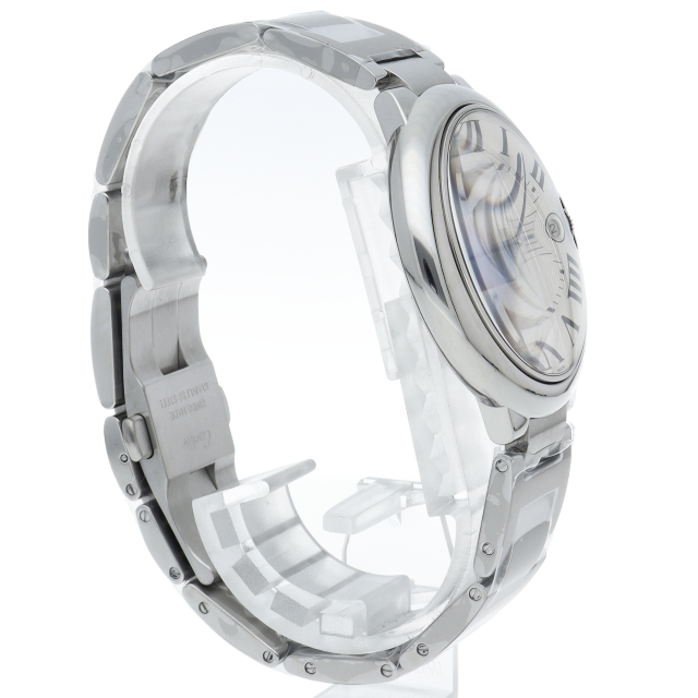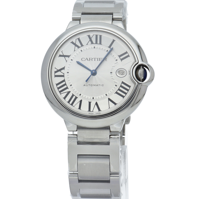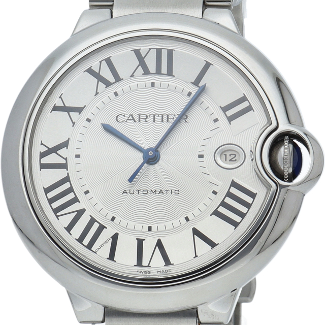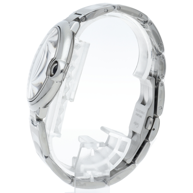 バロンブルーの名の通り風船のような綺麗な曲線が特徴的な人気モデル。深いブルーのリューズに沿って軌跡を描くローマ数字。凸レンズのようにふくらみを帯びたケース、ギョーシェ彫りを施したダイアル、剣型針、ポリッシュ仕上げのリンクス。“バロン ブルー ドゥ カルティエ”の魅力は風船のように漂い、カルティエ ウォッチの世界に多彩なニュアンスを添えます。